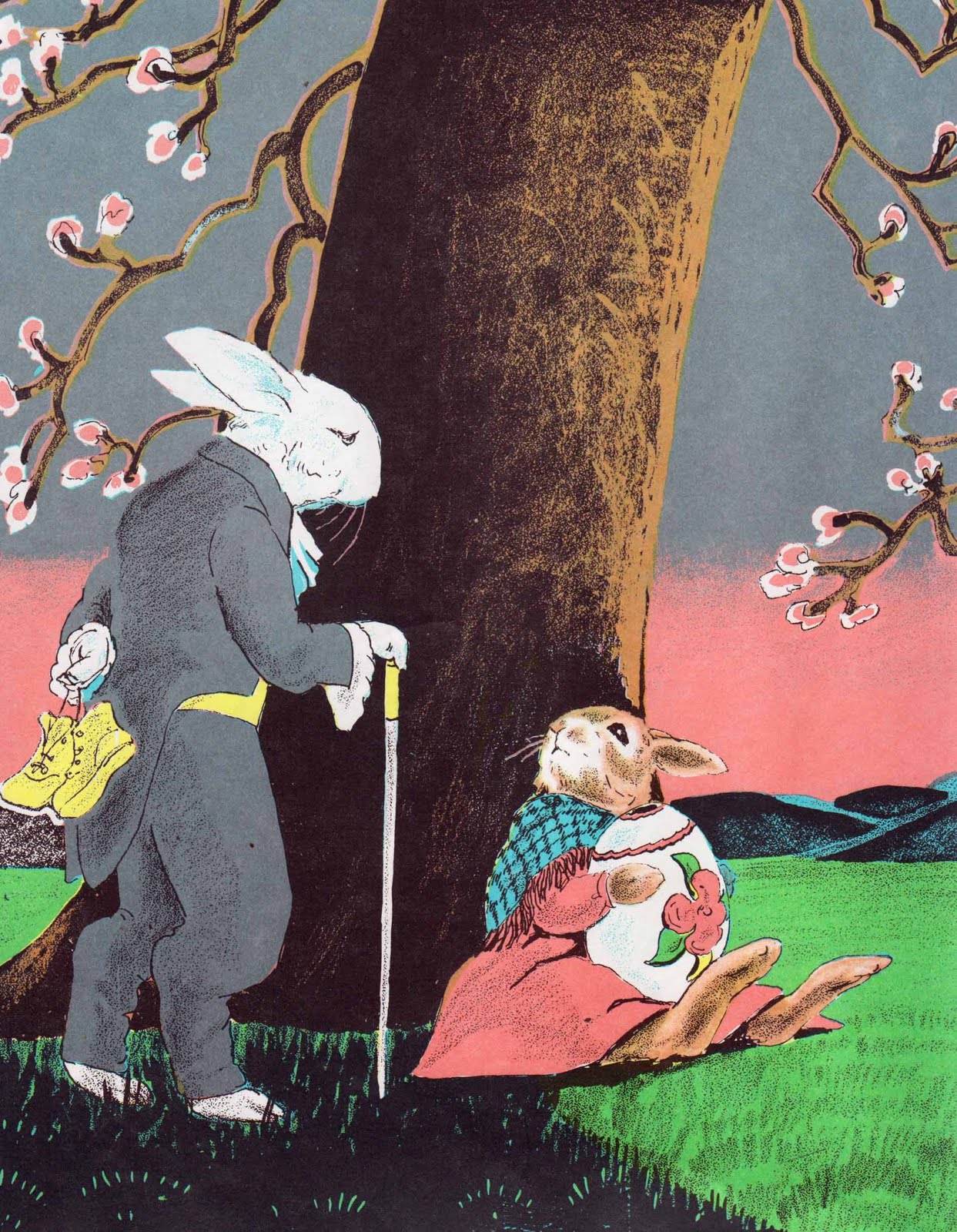 The country bunny attains the exalted position of Easter Bunny in spite of her responsibilities as the mother of twenty-one children.