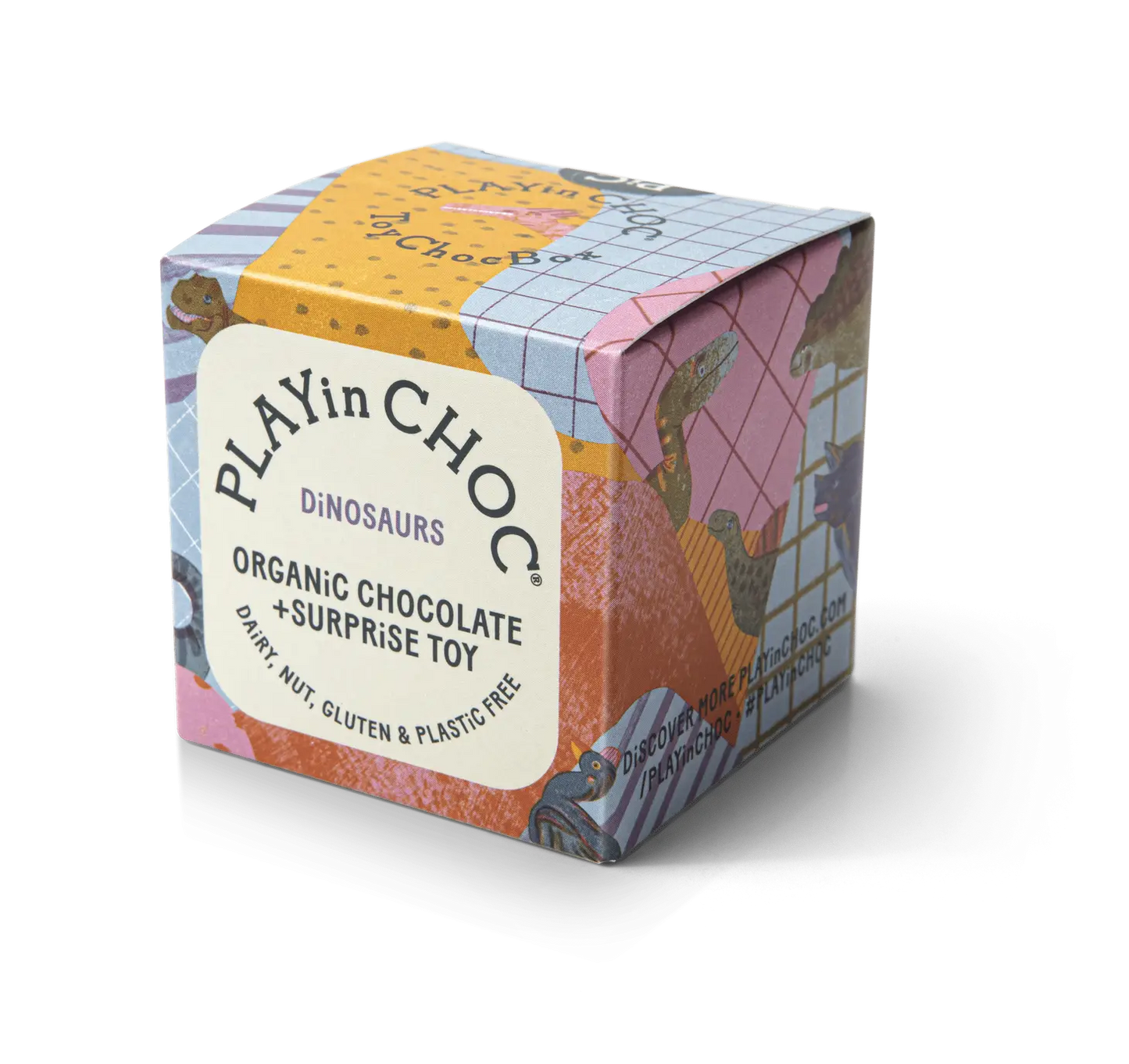 PLAYin CHOC® ToyChoc Box® contains 2 x 10g individually wrapped, deliciously creamy, organic, dairy-free chocolates and a delightful card toy to assemble. The toy is one of a collection of 18 to collect and also comes with its own fun facts card.