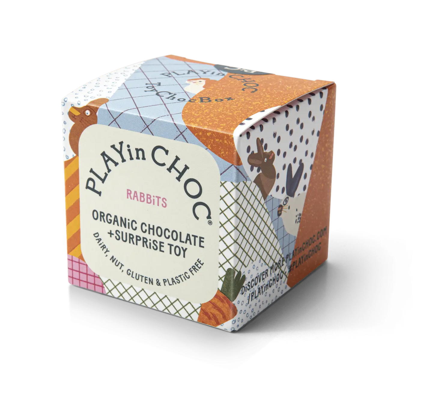 PLAYin CHOC® ToyChoc Box® contains 2 x 10g individually wrapped, deliciously creamy, organic, dairy-free chocolates and a delightful card toy to assemble. The toy is one of a collection of 6 to collect and also comes with its own fun facts card.