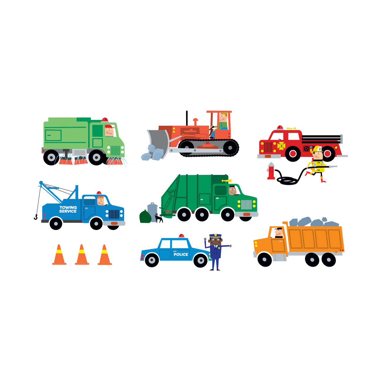 Each set includes 8 Tattlys and comes packaged in our new card stock sleeve with a full-color photo on the front. It also comes with a free single Tattly Sponge! Designs in the Traffic Set are: Fire Truck, Plow Truck, Police Car, Rock Mover, Sanitation Truck, Street Sweeper, Tow Truck, and Traffic Cones.