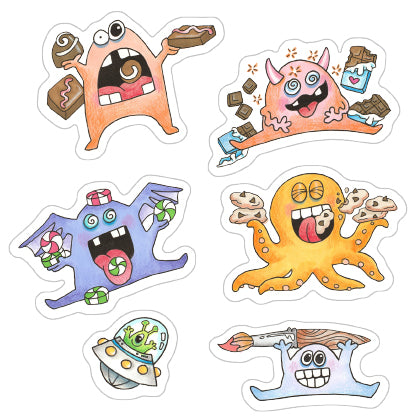 These super silly monsters are dedicated to making all who meet them happy, more self-confident and better little people or "monsters." Super silly monster stickers included!