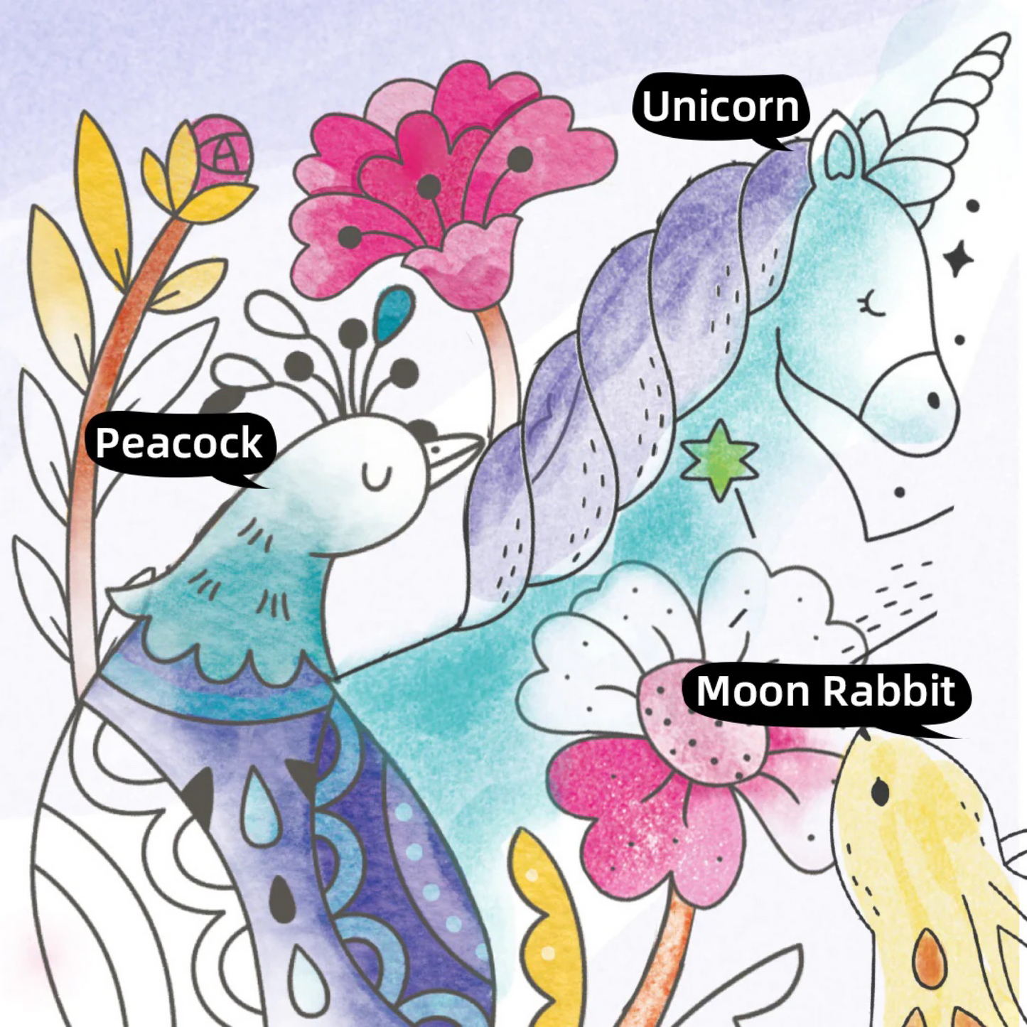 This series has built-in pigments. Just dip water to draw. Pigments, doodle pages & brush in 1 set. Great choice for on-the-go activity.