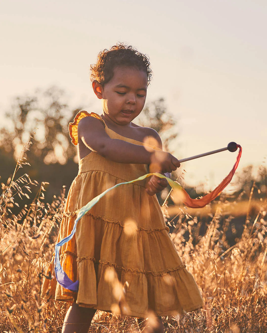 - The Mini Rainbow Streamer is an 8-inch, birch wood wand with a colorful, 3-foot long, 1-inch wide Rainbow Silk Streamer.