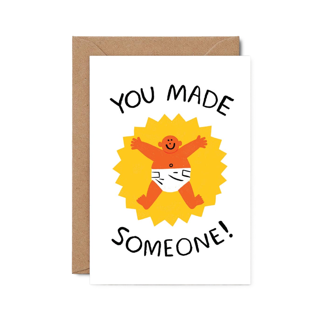 A joyful card to celebrate new arrivals. Illustrated in sunshine hues and paired with playful lettering.